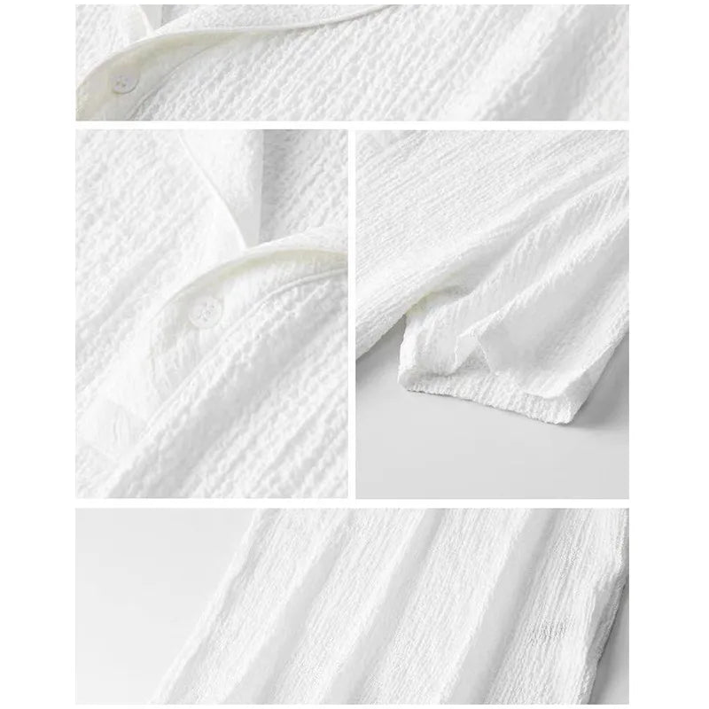Featuring a turn-down collar short sleeve top that pairs seamlessly with the casual long straight pants. Crafted from textured fabric and carefully tailored for a perfect fit, this set ensures lasting comfort and timeless style, making it a versatile choice no matter the occasion.